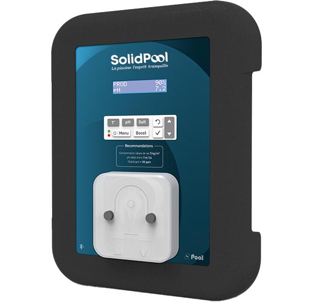 - Électrolyseur : avec une eau légèrement salée, il produit du chlore gazeux à partir du chlore à partir du sel pour éliminer les bactéries, les algues et tous les microorganismes de votre eau. La piscine est automatiquement traitée, ce qui permet de réduire la manipulation de produits de chimie
